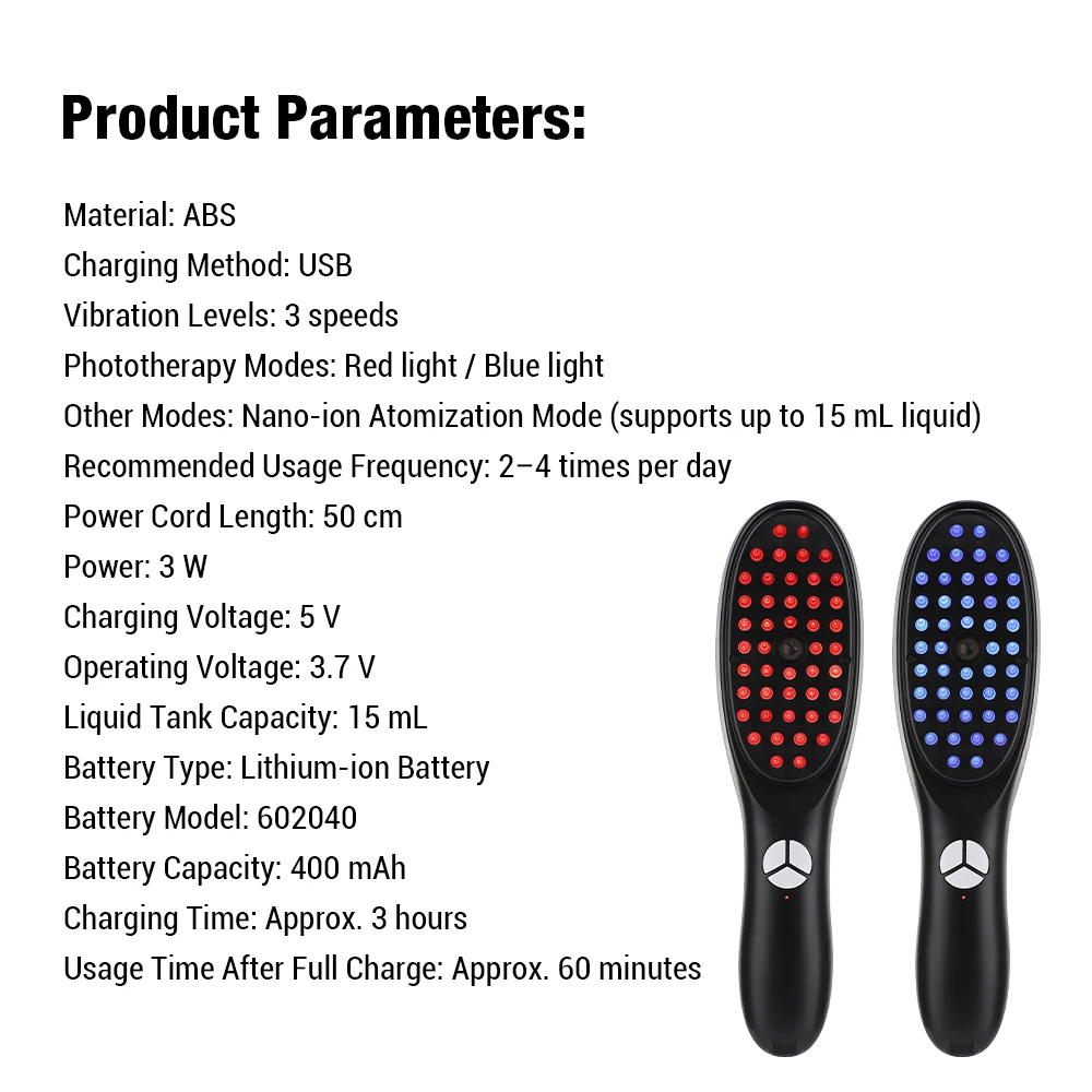 1. Multifunktionaler Massagekamm, Vibrationsmassage + rotes und blaues Licht + Nano-Zerstäubung, drei Effekte in einem, vielseitige Pflege für gesundes Haar.