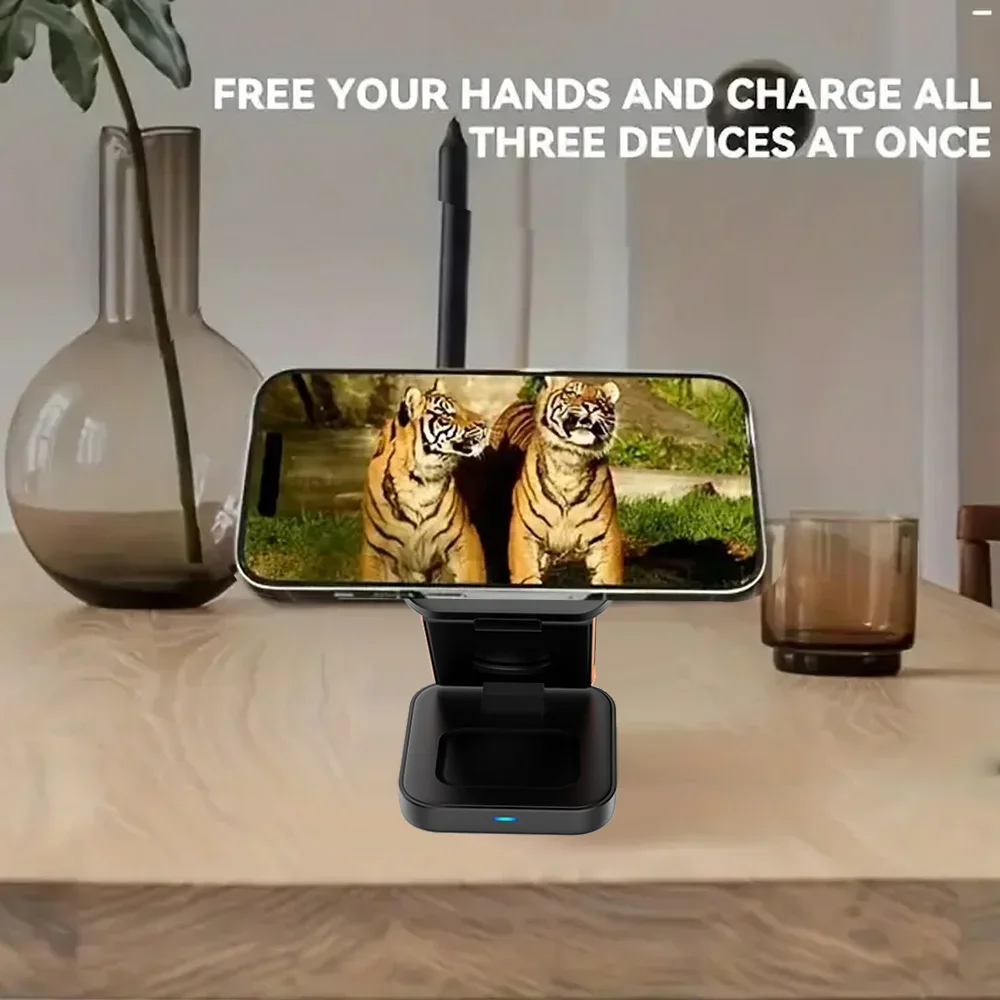 Magnetic Wireless Charger 3 in 1 Foldable Wireless Charging Station for iPhone 15 14 13 12 Pro Max Apple Watch 8 9 Charger Stand